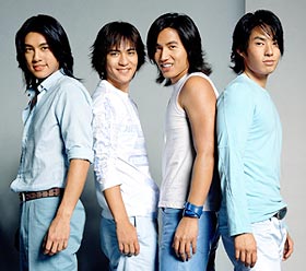 上到台后,F4继续装作友好,4兄弟互搭肩膀,用“行动”来粉粹传得甚嚣尘上的不合传闻。工作人员透露,F4只不过是在台上演一部好戏给歌迷看,结束演出后,F4各走各的路。