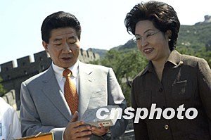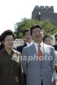 卢武铉与夫人登上北京八达岭长城,体验“不到长城非好汉”的美妙感受。中新社记者:毛建军