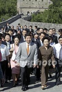 正在北京访问的韩国总统卢武铉与夫人及其随行人员九日登上北京八达岭长城。中新社记者:毛建军
