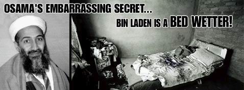 “这几位被捕的恐怖分子不原意泄漏他们领袖不体面的秘密,但是,我们最终查明本·拉登在这儿的每个晚上都会尿床,”该负责人说。