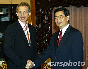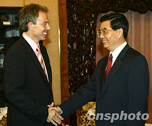 组图:国家主席胡锦涛会见英国首相布莱尔