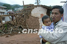云南省大姚县昙华乡是七月二十一日地震的重灾区,许多房屋倒塌。中新社记者:毛建军