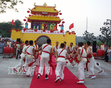 中新江苏网7月24日电(记者丁东升 实习记者胡祥麟 通讯员孙爱华)昨晚,数千市民扶老携幼欢聚南京狮子山公园广场,观赏在此举行的“阅江楼·大明雄风”主题灯展开幕式。当晚7点,在狮子山的东广场伴随着腰鼓队的一段精彩演出,为期四个月的灯展正式拉开帷幕。尽管天气闷热,但仍挡不住络绎不绝的群众的热情,整个东广场被挤了个里三层外三层。