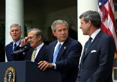 布什今天与美国国防部长拉姆斯菲尔德和美国驻伊拉克最高行政长官布雷默在白宫玫瑰园面向新闻界发表讲话。布什称乌代和库赛是萨达姆的两个主要追随者,应对无数伊拉克人遭拷打、致残、被杀负责。布什说,现在所有伊拉克人比以前更清楚地意识到,前政权已经消亡,不会再回来了。
