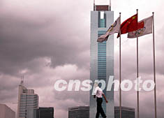 今年第七号台风伊布都(IMBUDO)的中心二十四日上午在广东登陆,广州市区受台风影响乌云密布,狂风四起。作者:柯小军