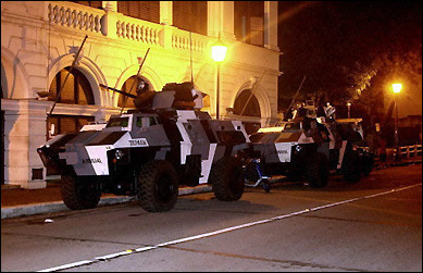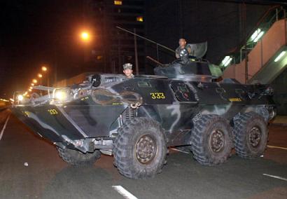 据法新社报道,阿罗约发表全国电视讲话说:“我限令你们在今天下午五点之前投降缴械,回到兵营去。”