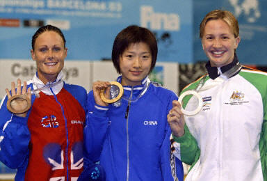 女子五十米自由泳决赛中,荷兰名将德布鲁因显示了她的绝对实力,以二十四秒四七轻取冠军,澳大利亚的米尔斯和雷顿分别以二十五秒零七和二十五秒零八获得亚、季军。