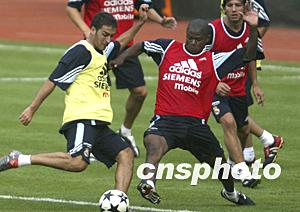 皇马一行对今日下午在昆明拓东体育场进行的公开训练赛相当重视。教练组上午没有安排任何与对抗有关的训练内容,皇马后勤组还全部按照正式比赛的规格准备饭菜,以保证球员有足够的能量应付下午进行的公开训练赛。