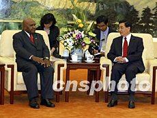 中国国家主席胡锦涛三十日在北京会见巴布亚新几内亚总督阿托帕尔。中新社记者:满会乔