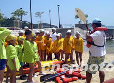 “2003年救生小铁人培训计划”。由香港拯溺总会主办“2003年救生小铁人培训计划”,三日在浅水湾举行,虽然天晴酷热,最高气温约33度,但小朋却细心聆听导师讲话。中新社记者:谭达明
