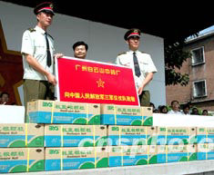 图:广东为解放军三军仪仗队赠送抗高温防暑药