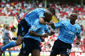 曼城队一上来就让对手惊出了一身冷汗。福勒在第2分钟就有一次射门,查尔顿队门将罗伊斯用指尖将这次射门挑出。曼城队士气大增,继续向对手发动攻击。第12分钟,曼城队中场球员菲利普斯被对方后卫巴克尔放倒,阿内尔卡主罚点球命中。