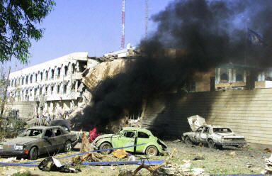 一名美国军方女发言人告诉路透社说:“我们可以肯定大约在当地时间下午4:30分(北京时间19日晚上9点),一个汽车爆炸对联合国驻巴格达总部大楼发动了袭击。”(章田)