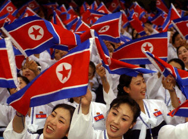朝鲜美女拉拉队一行共有302人,名貌美如花的妙龄少女平均年龄20岁。这些姑娘并不是专业的拉拉队员,她们之中绝大多数从事艺术专业。在大运会期间,她们将为朝鲜队加油呐喊,并会载歌载舞,表演一些传统节目。图为朝鲜美女拉拉队为大运会开幕式博彩。