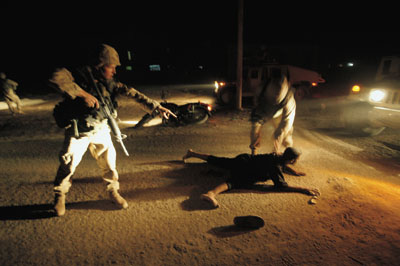 对美军来说,另外一个重要的源是在巷战中俘获的伊拉克游击分子。美国人会“蓄意”挑起冲突,请君入瓮。譬如说,他们会将一辆没有任何掩护的巡逻坦克开到可疑地区。伊拉克游击分子见此“良机”,便会贸然出来行动。坦克手锁定伊拉克发动进攻的方位后,便迅速请求支援。美军会包围住整个街区,特种分队对游击分子藏身之地发动强攻。当然,所有被俘的伊拉克人都被认为是萨达姆的“同党”,是萨达姆资助他们进行抵抗行动。所以,这些俘虏均被拷问,让他们供出从何人手中得到买武器的钱。