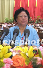 中共中央政治局委员、国务院副总理、国务院妇女儿童工作委员会主任吴仪出席了今天的闭幕式并讲话。