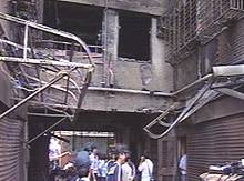 有目击者称,火势从“大囍市”社区一楼停放机车的地方开始燃烧,警消人员在半小时将火势控制,但火苗仍然往楼上窜烧,楼上有多人受困,消防人员利用云梯车进行抢救。但是仍有民众受不了大火而自行攀绳逃生,甚至跳楼。