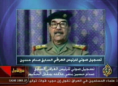 录音讲话还说,“萨达姆·侯赛因是全体伊拉克人民的领袖,包括伊拉克的所有阿拉伯人、库尔德人、什叶派和逊尼派穆斯林以及非穆斯林。这不是萨达姆自封的称号,而是伟大的伊拉克人民通过自由选举其总统而作出的决定”。