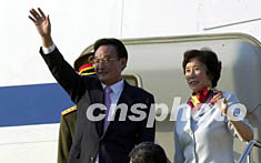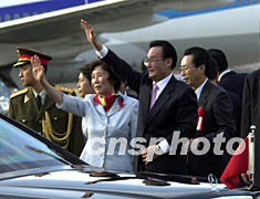 组图:全国人大常委会委员长吴邦国抵达东京