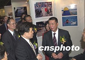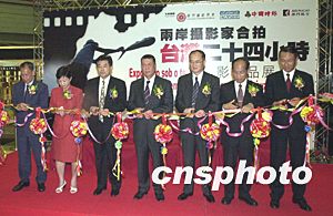 『两岸摄影家合拍台湾二十四小时摄影作品展』十一日在澳门观光塔举行,澳门特区行政长官何厚铧、中国海外交流协会副会长赵阳、中央驻澳联络办副主任王金翔等出席开幕式并为展览剪彩。中新社记者:李刚