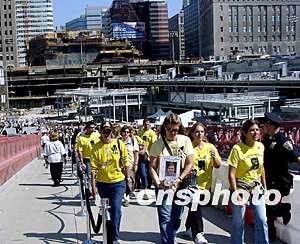 中新社纽约九月十一日电(记者 陈建)九月十一日,在纽约工作的赵小姐像其他几千人一样,早晨五点出发,赶往世贸中心遗址,参加“九一一”恐怖袭击事件两周年纪念活动。她说,当走进那个六万五千平米的“大坑”时,心情骤然沉重起来,“有那么多遇难者亲属到场缅怀,大家相互慰问,真的很伤感。”