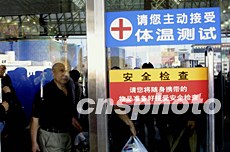 中国“十一”国庆长假前夕,北京西客站设立的体温检测点随时自动监测过往旅客的体温状况,保障节日出行者的健康。中新社记者:王瑶