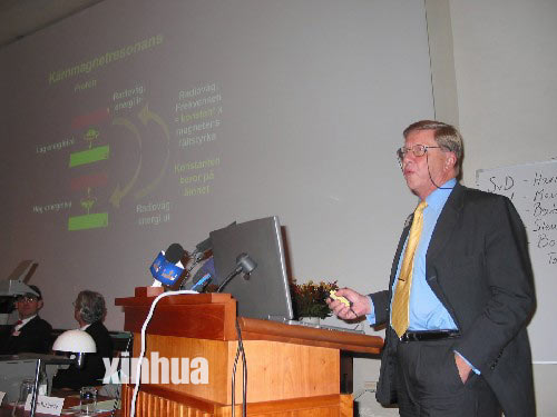 按照惯例,卡罗林斯卡医学院诺贝尔奖评选委员会秘书汉斯·约恩瓦尔在新闻发布会上用瑞典语、英语、法语和德语宣布了今年获奖者的名字及获奖理由。两位科学家将分享共为130万美元的奖金。他说,今年诺贝尔生理学或医学奖的两位获奖者在如何用核磁共振技术拍摄不同结构的图像上获得了关键性发现。这些发现导致了在临床诊断和医学研究上获得突破的核磁共振成像仪的出现。