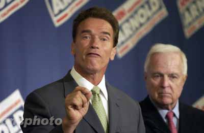中新网10月8日电 据美国CNN最新消息,根据加利福尼亚州长选举的统计情况,好莱坞影星阿诺·施瓦辛格将最终胜出,取代现任州长戴维斯的职务。
