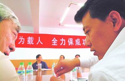 图:神舟5号总设计师和总指挥在作临战前的准备