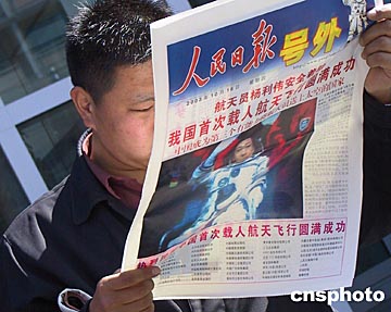 香港舆论聚焦“神舟”五号征空成功市民纷纷抢阅