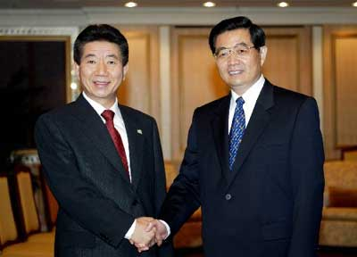 中新网10月20日电 新华网报道说,中国国家主席胡锦涛19日在曼谷会见了韩国总统卢武铉。