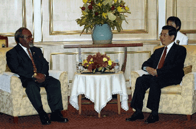 中新网10月20日电 新华网报道说,中国国家主席胡锦涛19日下午在曼谷会见了巴布亚新几内亚总理索马雷。胡锦涛说,中国和巴新两国人民有着长期友好交往的历史。近年来通过我们双方的共同努力,两国关系顺利发展。双方高层交往不断,经贸合作成果显著,巴新已成为中国在南太岛国中最大的贸易伙伴。在太平洋岛国论坛、亚太经合组织、联合国等地区和国际组织中,我们双方也进行了密切的合作。