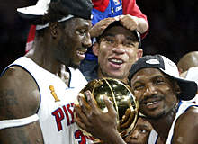 活塞4-1力克湖人夺取NBA总冠军