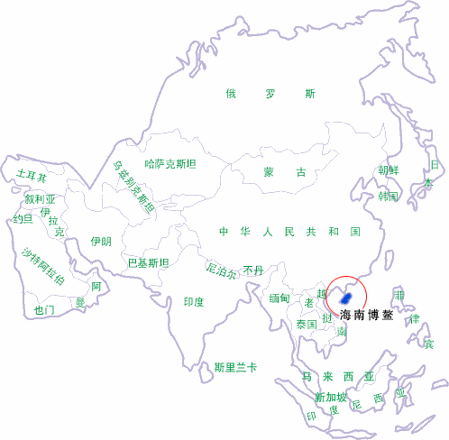 博鳌位于中国海南岛的东海岸,地处东亚与东南亚结合的亚太经济圈的中心地带。