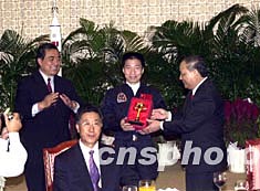 与杨利伟在太空度过二十一小时的“神舟五号”返回舱等实物,已于今天凌晨由香港经陆路运抵澳门,在今天下午开幕的“中国首次载人航天飞行展”上向澳门市民展出。