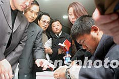十一月五日,毛泽东之孙毛新宇在北京王府井书店为购买《爷爷毛泽东》一书的读者签名。毛新宇以一个亲人的独特视角抒写了对爷爷的真挚情感,表达了对毛泽东的怀念。中新社记者:史利
