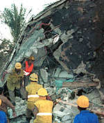 图:沙特首都发生连环爆炸事件 救援人员搜救