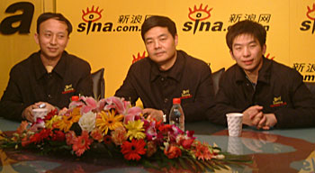 主持人:各位新浪网友,大家好!这里是新浪嘉宾聊天室,今天我们非常高兴地请太阳星城爱心之旅采访团的成员来到我们的聊天室和各位网友在线交流如何扶助弱势群体。首先介绍一下各位嘉宾,这位是青年社会活动家宋体金先生(右二),另外一位是冠城大通有限公司总经理韩国建先生(左二),还有一位记者韩雨亭(右一)是这次爱心之旅特派记者,同时也是《人物周刊》的记者。很高兴三位到新浪做客。先和各位网友打一个招呼吧。