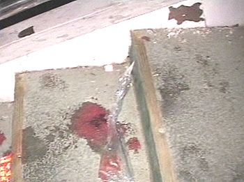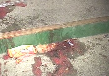 踩挤事故现场留下的血迹(电视截图)