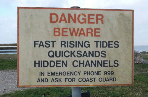 图:莫克姆湾海滩竖起一块警示危险的标牌