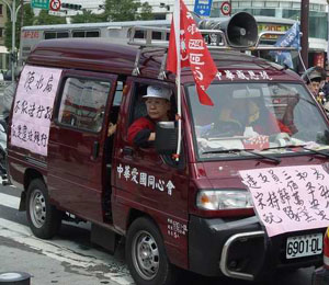 游行自下午1时许开始,参加民众分乘160多辆汽车,车上插着旗帜、贴着标语,上书“爱中华,反‘台独’,反战争,要和平”、“拒领公投票,否决违法公投”等字样。车队从中华路与成都路交界处出发,浩浩荡荡穿行台北市区主要街道,最后汇集到台湾当局领导人的办公场所前。游行民众在这里高喊口号,书写标语,表示抗议。