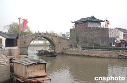 第二十八世界遗产大会六月将在古城苏州召开,苏州市日前决定届时将正式提出古城申报世界遗产。有关专家认为,历史悠久的苏州古典园林仅是古城的一个组成部分,它与古城墙、古河道、古塔、古桥等以及风土习俗融合成了一个不可分割的整体,整个古城犹如一个多姿多彩的“博物馆”。图为姑苏城外寒山寺“枫桥夜泊”景点。作者:蒋振江
