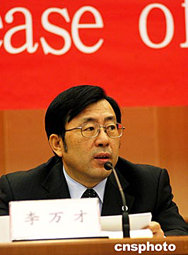 三月二十四日,辽宁省副省长李万才在北京人民大会堂,向中外记者介绍今年九月将在沈阳举办的“第三届中国国际装备制造业博览会”的情况和当地经济发展进程。中新社记者:王丽南