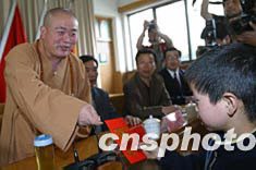 四月十七日,嵩山少林寺方丈释永信大和尚在登封市向孤儿发放救助款,此举标志着中国嵩山少林寺和河南省慈善总会联合开展的“千名孤儿救助计划”正式启动。“千名孤儿救助计划”是由嵩山少林寺与河南慈善总会共同发起组织的一项针对贫困孤儿的长期救助计划。该项目在河南省内选出符合条件的一千名孤儿作为长期救助对象,并从救助的孤儿中挑选五十至一百名孤儿由非营利慈善机构“少林慈幼院”收养,对他们进行系统教育和培养。中新社记者:慎重