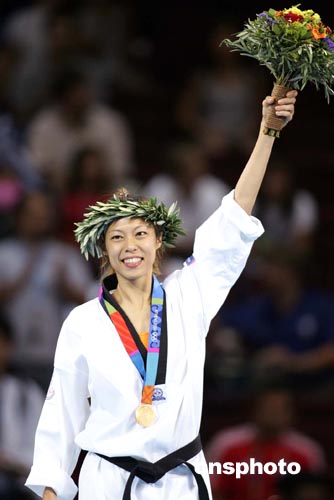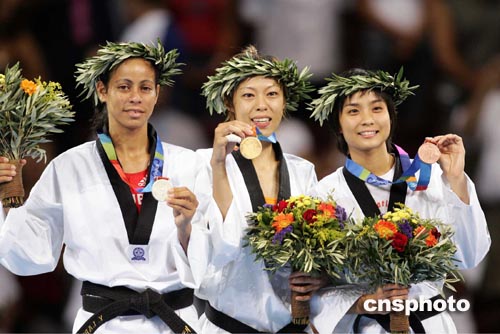 中新社雅典八月二十六日电 二十六岁的中国台北选手陈诗欣今天在奥运会女子跆拳道四十九公斤级决赛中力克古巴名将莱布拉达,为中国台北夺得奥运会历史上的首枚金牌。