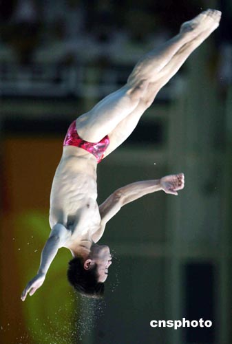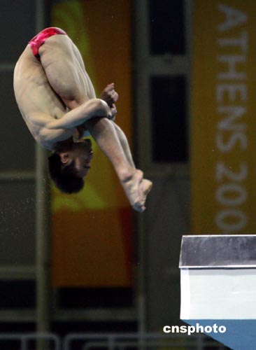 当地时间8月28日晚,在雅典奥运会跳水最后一项比赛--10米跳台决赛中,中国名将胡佳夺得冠军。中新社记者:任晨鸣