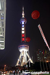 图:上海东方明珠三色彩灯迎接法国贵宾