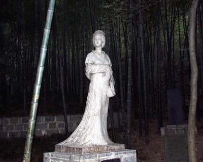 在导游引领下,记者们在竹林深处看到了唐朝武则天的孙女玉真公主的雕像。玉真公主当年曾钟情于李白,但终因门户观念阻隔而分离。传称,玉真公主后曾寻李白于敬亭山而不遇,终在此削发为尼,数年后郁郁而终。此后,李白曾重游敬亭山,感伤不已。