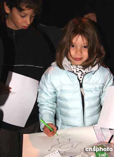 4岁女童将一张自己画的和平鸽献给阿拉法特。作者:钟诚