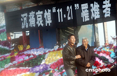 11月23日下午,11.21包头空难遇难者家属在飞机失事现场搭设的灵堂前悼念亲人。中新社记者:张宇